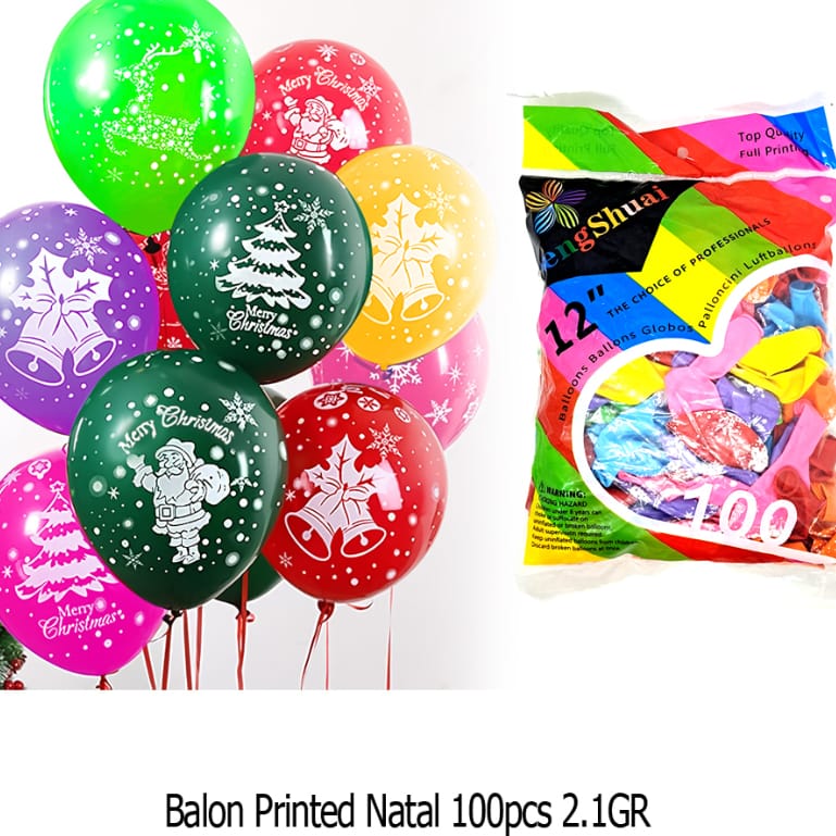(100Pcs) Balon natal 2,1gr, Balon latex natal, balon merry christmas, dekorasi natal, hiasan natal