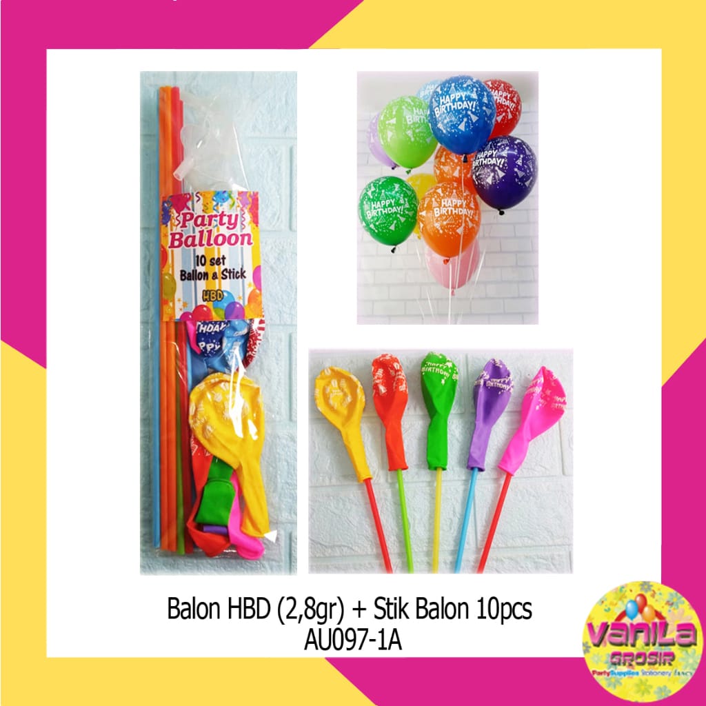 Harga Yang Tertera 10 Pcs Stik Balon Warna + 10 Pcs Balon Happy Birthday + 10 Pcs Cup Balon